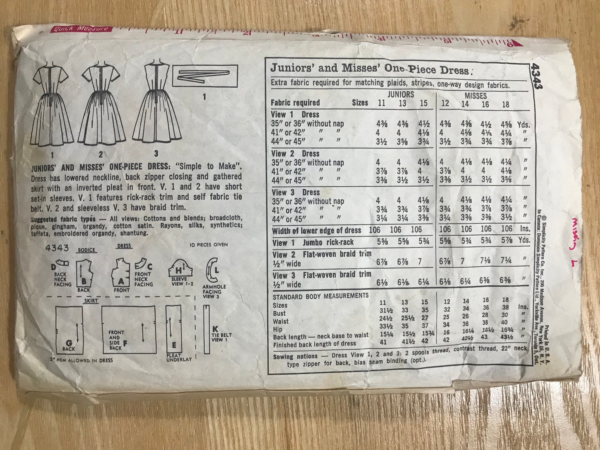 Simplicity 4343 Pattern Cut Missing Facing 1960s Simple Scoop Etsy