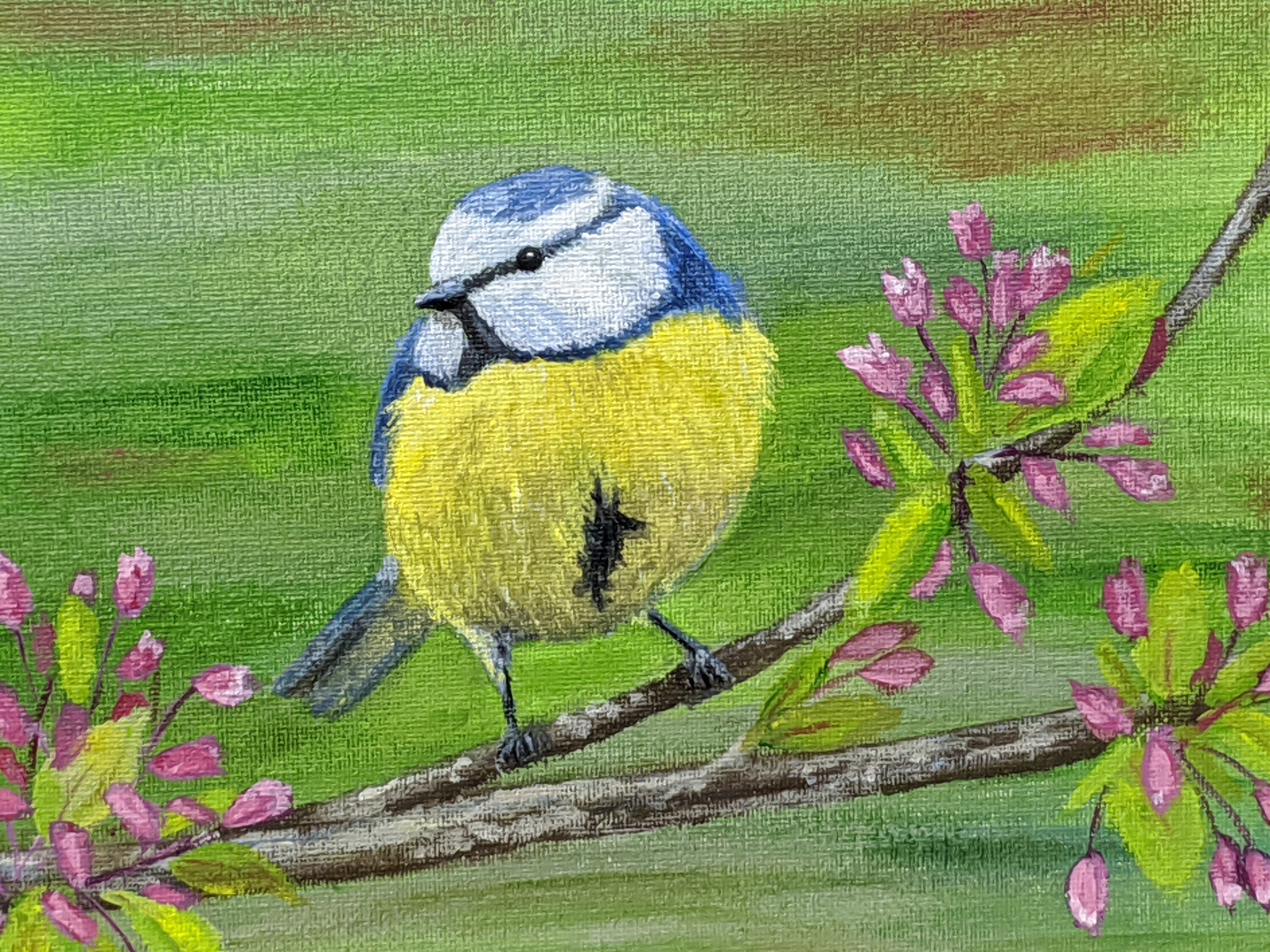 Original Hand Painted Bird Art Acrylic European Blue Tit Etsy
